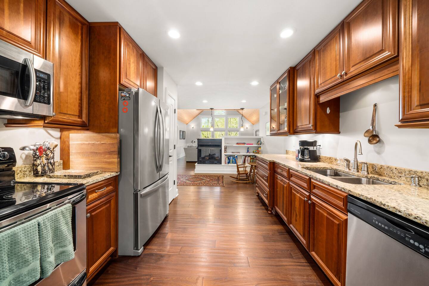 Spacious peaceful mountain home. Lots of room for everyone to spread out and relax. Luxurious living room, chefs kitchen. Very family friendly with pack and play, strollers, high chair and many books and toys. Fenced backyard, gas fire pit. EV charger! Downstairs suite can allow for privacy and separate living space if desired for multiple families or generations. No full kitchen downstairs but does have mini fridge, microwave, keurif