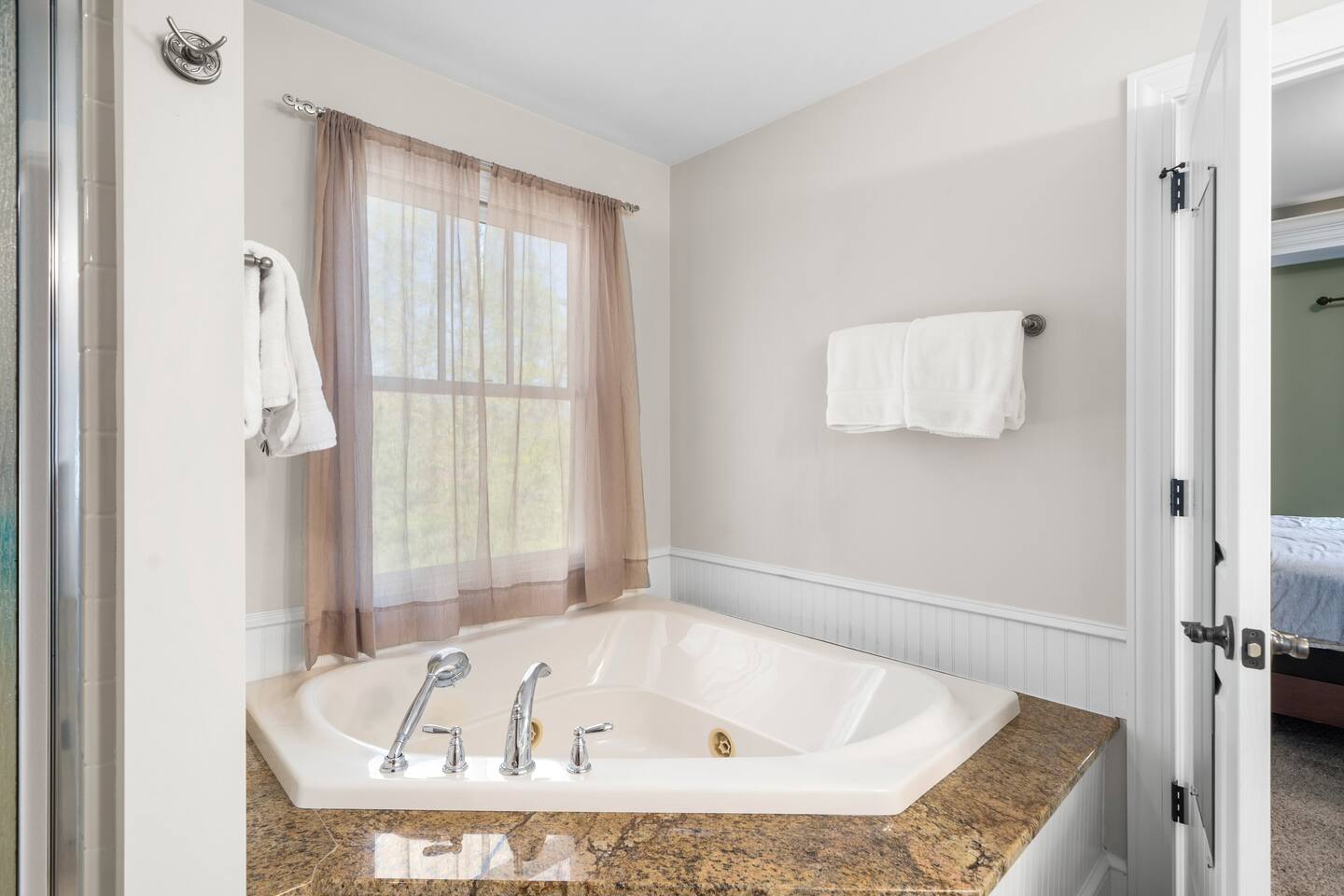 Guests are able to access all areas except the unfinished part of the basement and space above the garage.